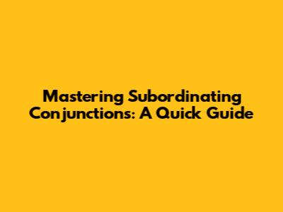 Mastering Subordinating Conjunctions: A Quick Guide
